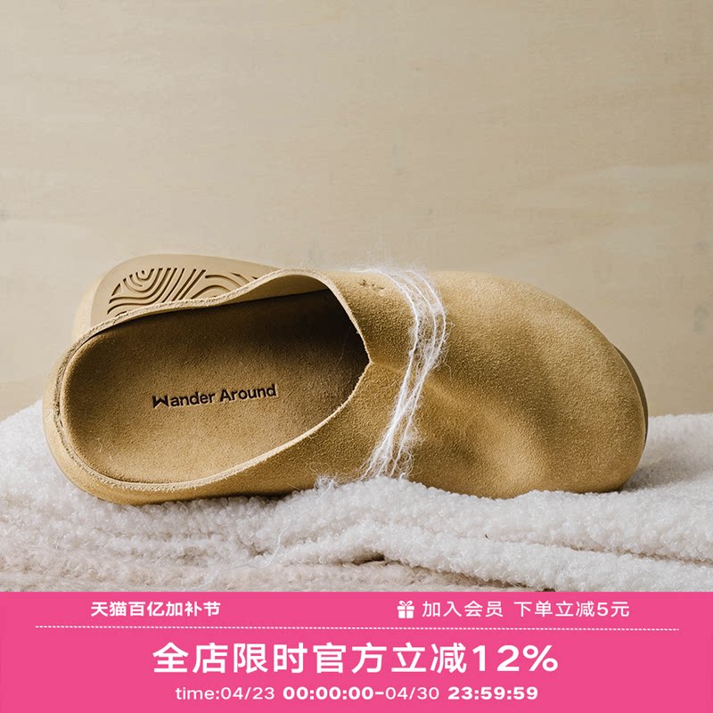 Wander around厚底增高牛皮绒面革软底勃肯鞋复古休闲懒人拖鞋女