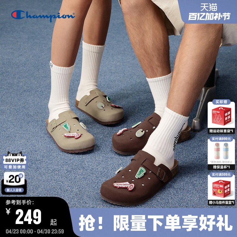 Champion冠军包头拖2026夏季新款女时尚洞洞勃肯鞋男透气休闲拖鞋