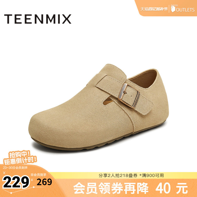 天美意春新款平底单鞋两穿半拖鞋男女同款勃肯鞋KK062CM5