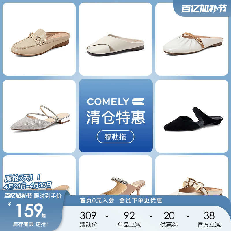 康莉comely穆勒鞋女包头半拖鞋外穿凉拖单鞋 159元起不定时更新