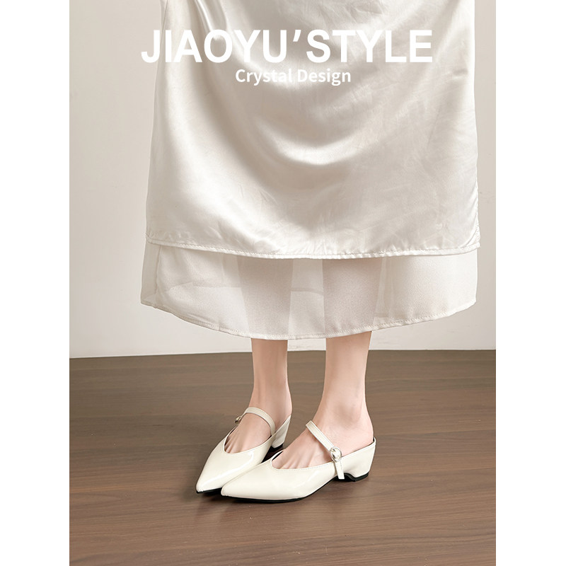 真皮~骄屿包头半拖鞋女夏季外穿2026新款法式穆勒单鞋一字凉拖鞋