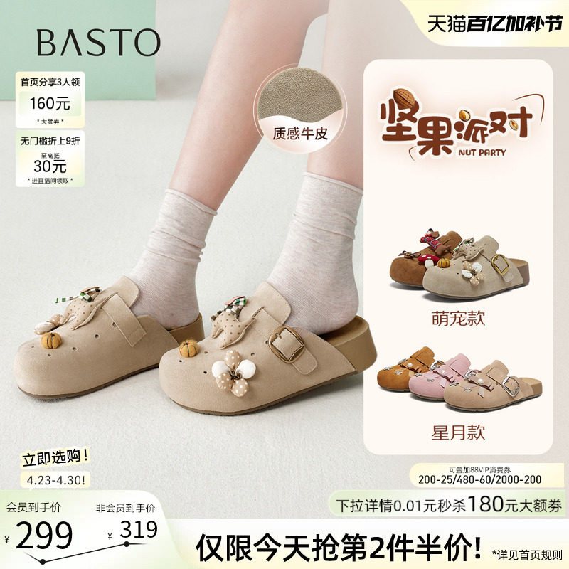 百思图2026夏季新款卡通洞洞鞋勃肯鞋休闲外穿包头女拖鞋D3899BH6