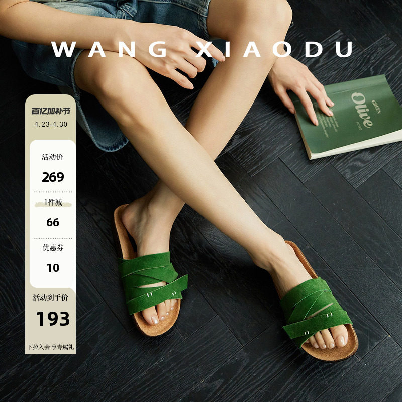 【王小毒】彩虹织夏●2.5cm牛反绒一字凉拖鞋女外穿交叉带勃肯鞋