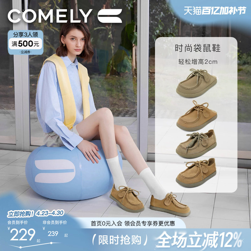 康莉袋鼠勃肯鞋女真皮春夏新款复古包头半拖鞋厚底软底系带小皮鞋