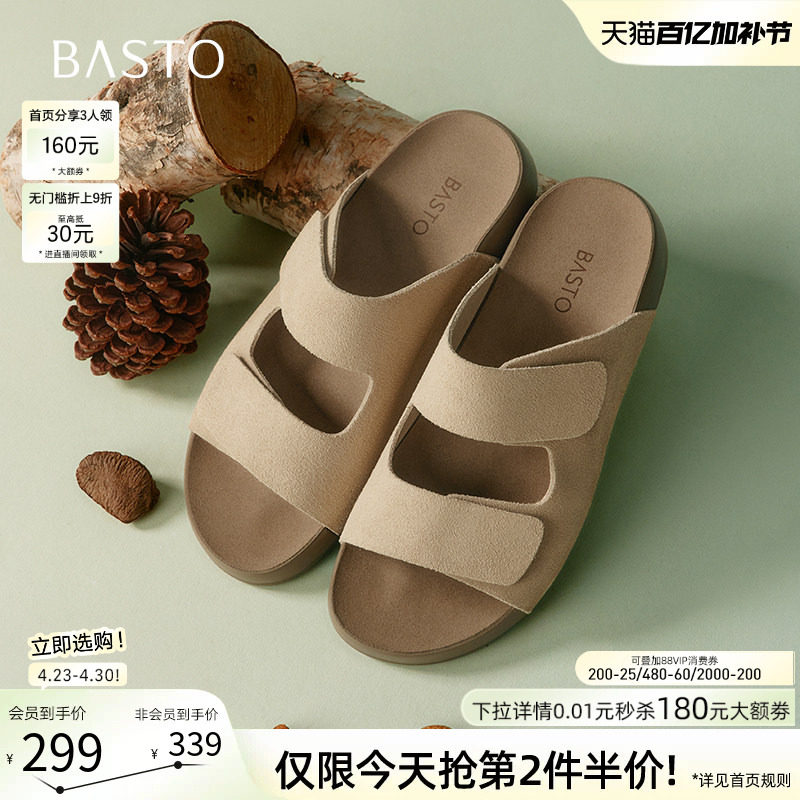 百思图夏季商场新款休闲懒人勃肯鞋平底外穿女拖鞋A6412BT5