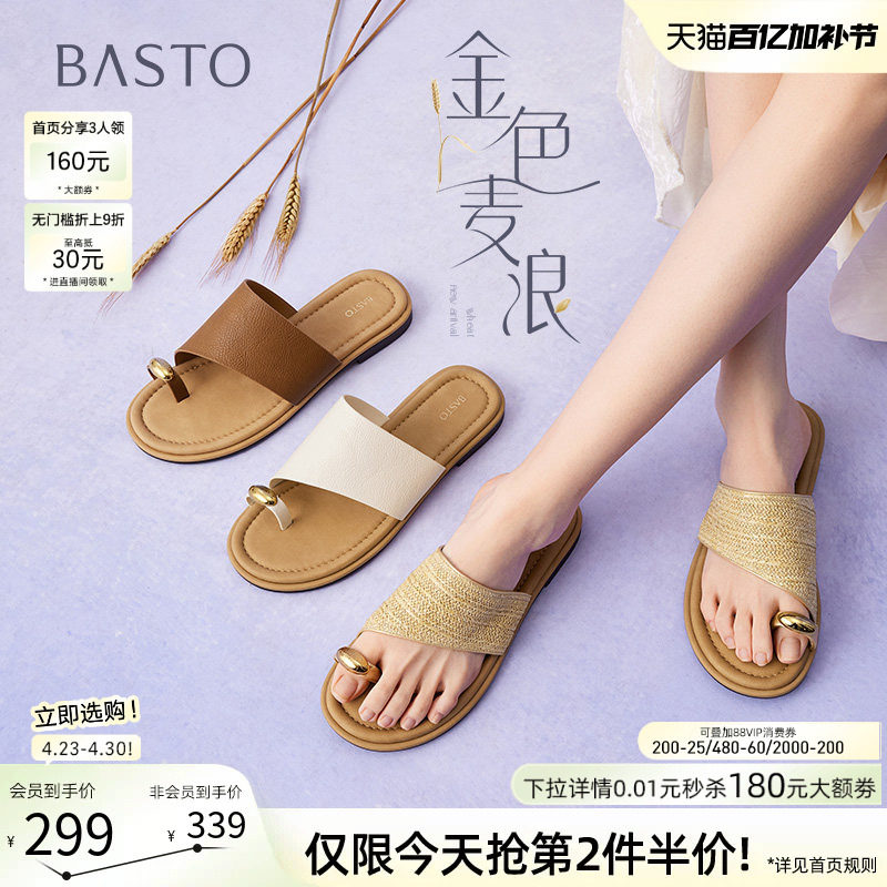 【孙乐言同款】百思图金色麦浪26夏新款度假外穿厚底沙滩凉拖鞋女