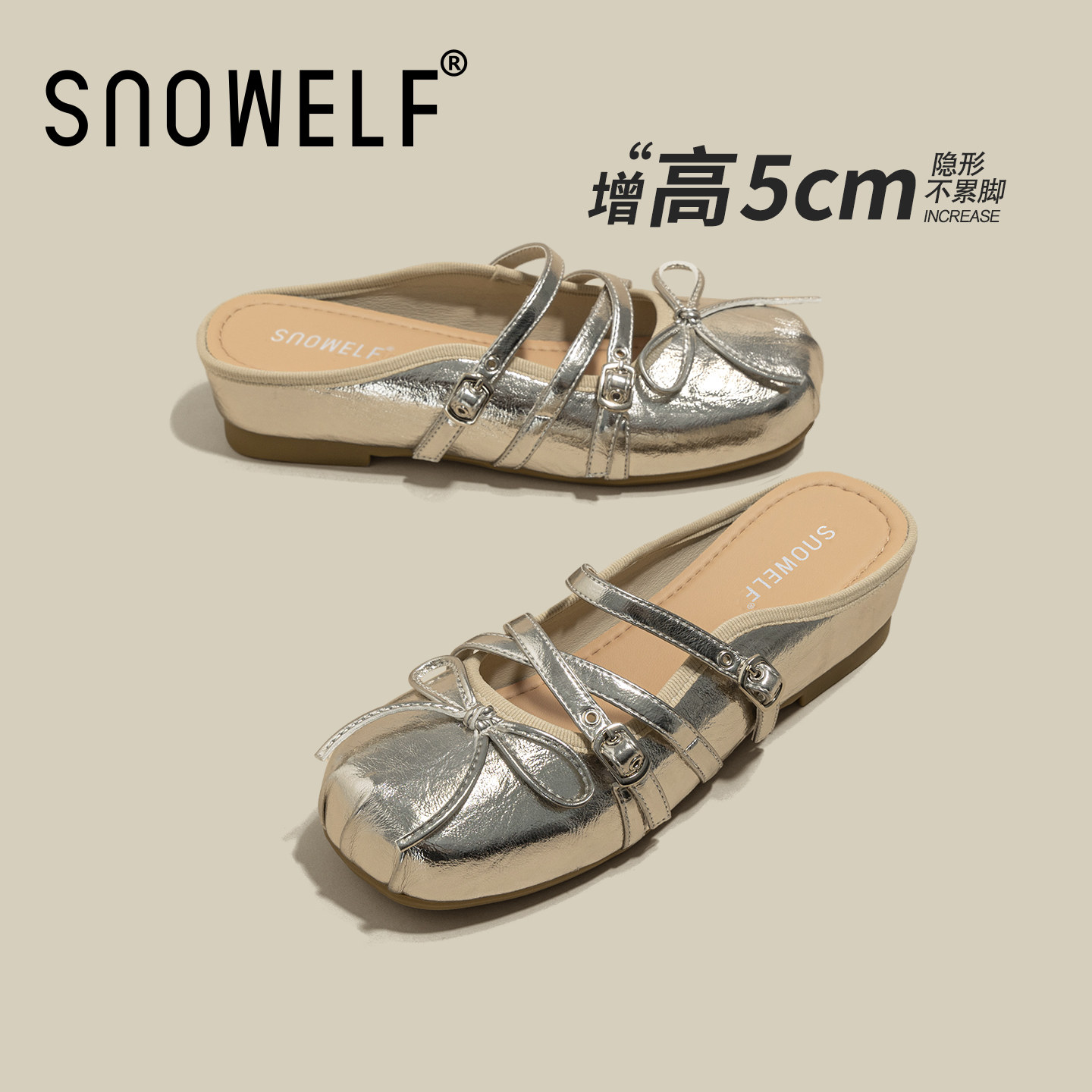 银色单鞋女2026新款夏季透气玛丽珍鞋一脚蹬女鞋子厚底半拖凉拖鞋