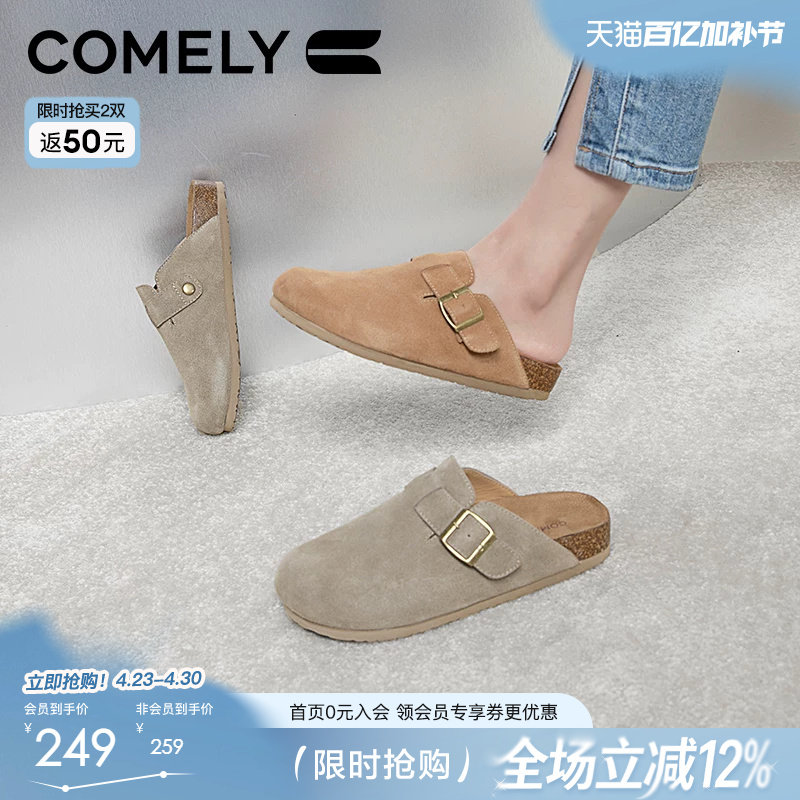 康莉半拖勃肯鞋女真皮春夏新款复古包头拖鞋懒人一脚蹬平底穆勒鞋