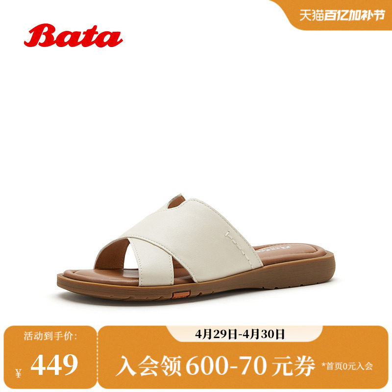 Bata一字拖女2026夏季新款日常居家外穿舒适羊皮软底拖鞋AYJ17BT6