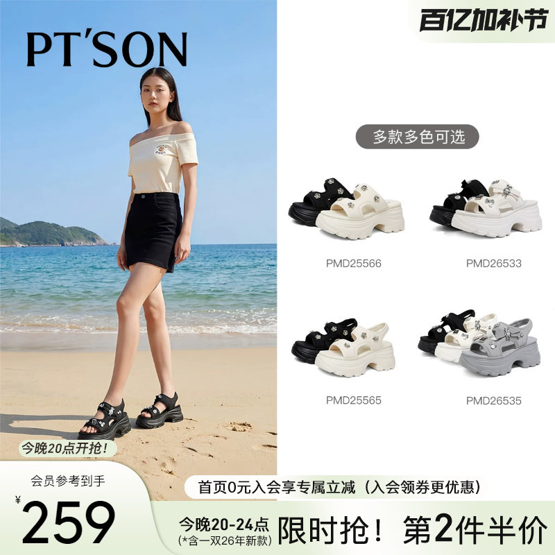 百田森流行运动凉鞋女春季新款拖鞋女夏外穿厚底增高显瘦女士拖鞋
