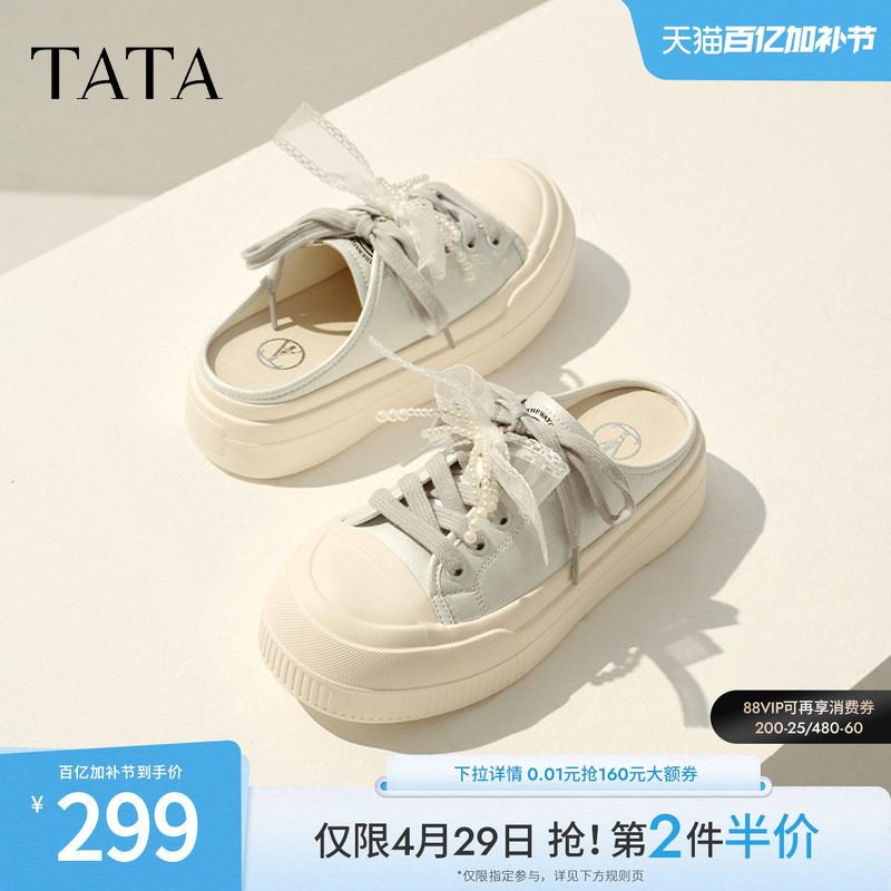 TATA他她厚底包头拖鞋女鞋透气休闲小白鞋板鞋通勤新款CR901BH5