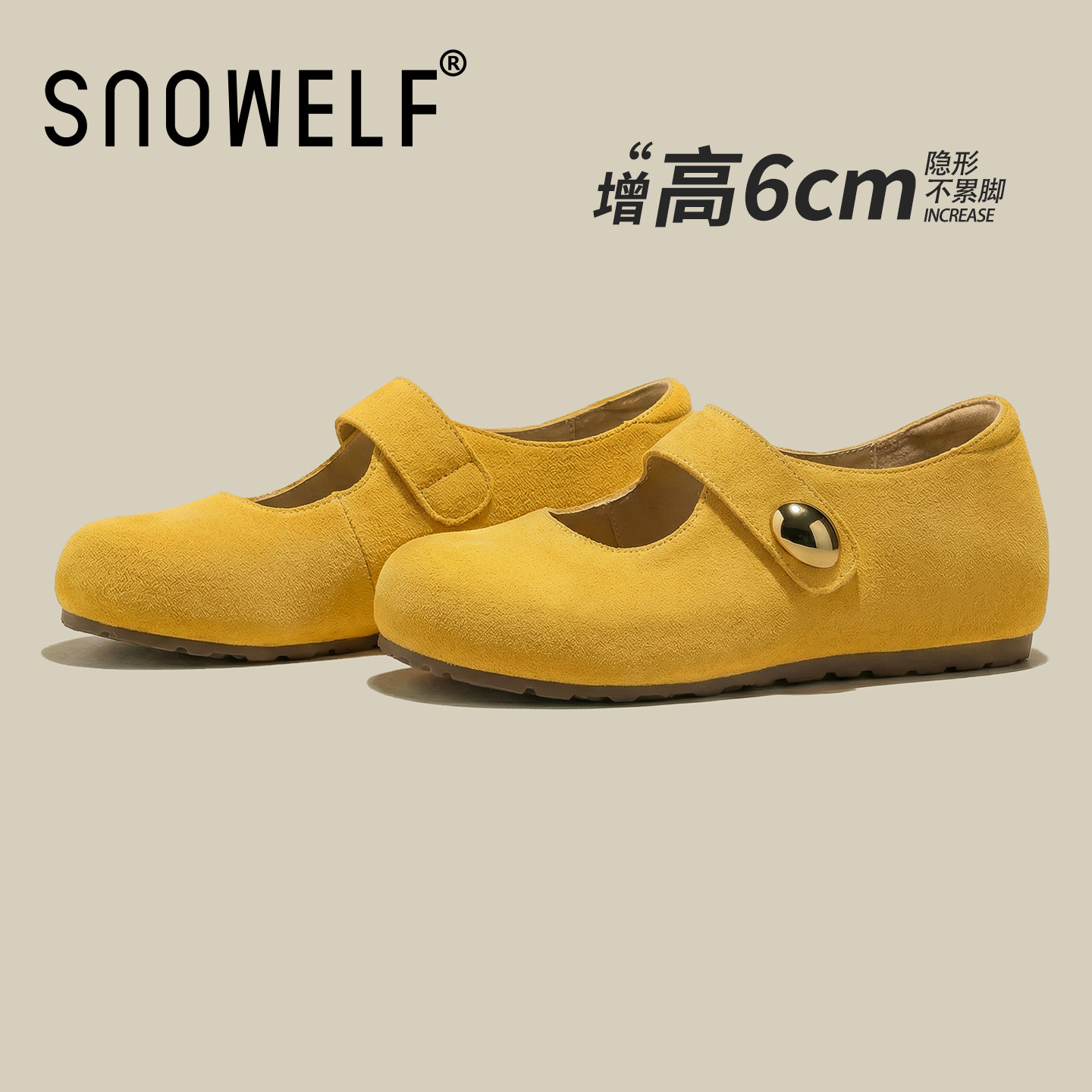 真皮复古厚底勃肯鞋女款2026新款春季内增高拖鞋百搭休闲黄色鞋子
