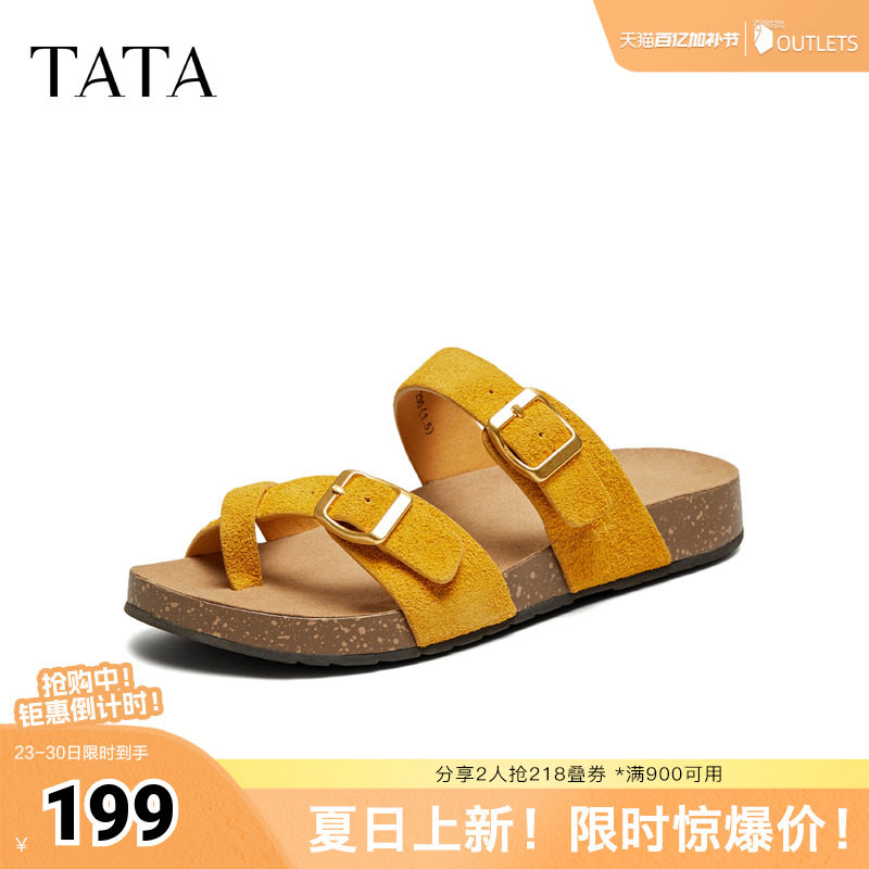 TATA他她复古休闲勃肯鞋拖鞋女外穿夹脚凉鞋2025秋季新款7GN11BT5