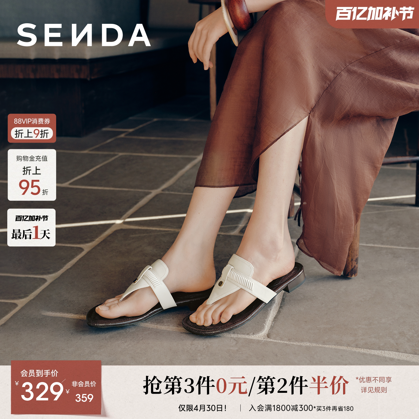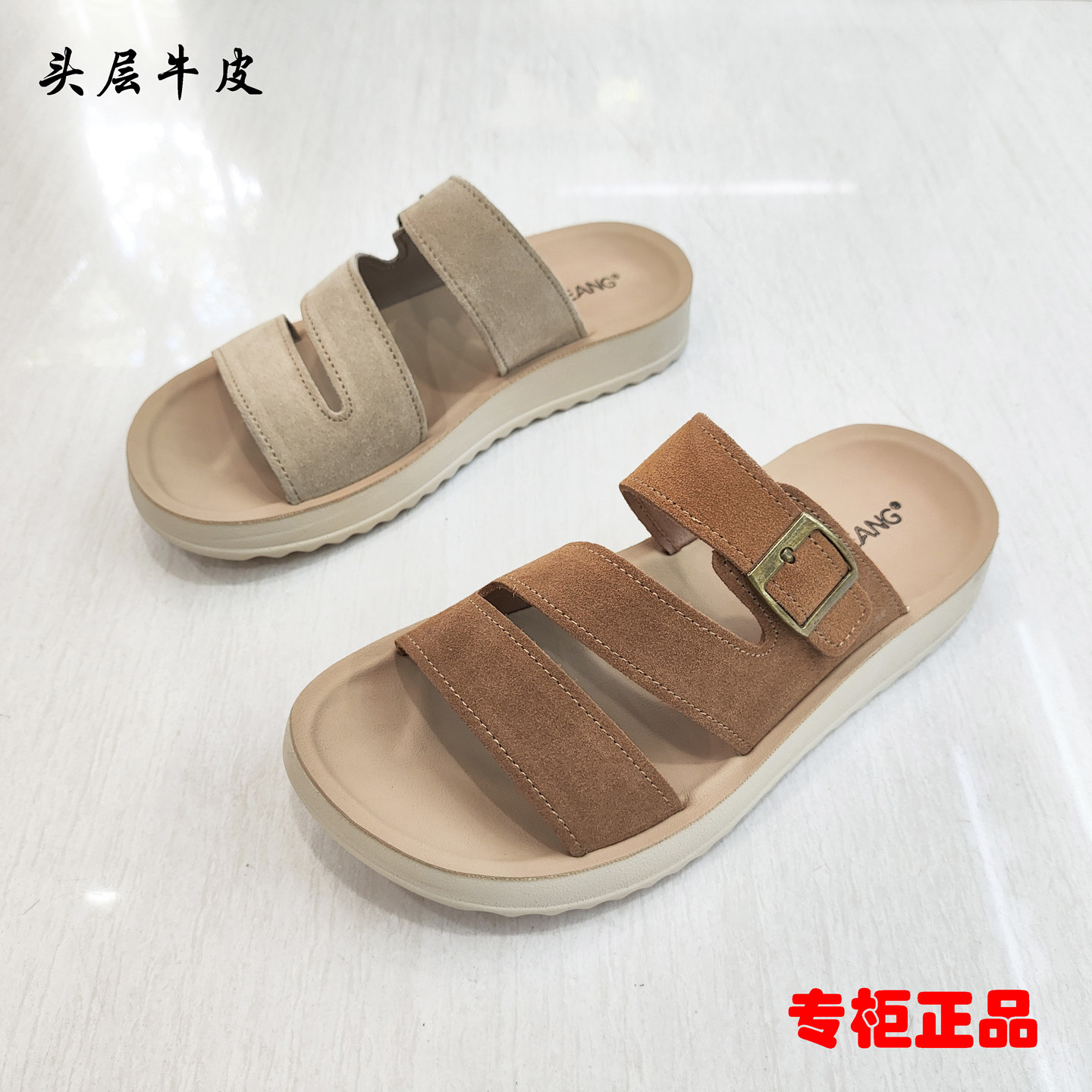 森达羊皮人字拖女鞋26夏季新款海边沙滩夹趾拖软面舒适外穿凉拖鞋