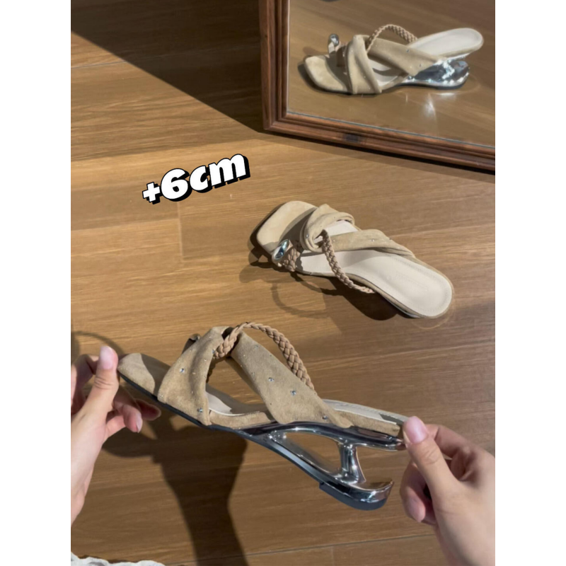 6cm悬浮跟小众设计感铆钉波点夏一字拖女异型跟夹趾凉拖鞋配裙子