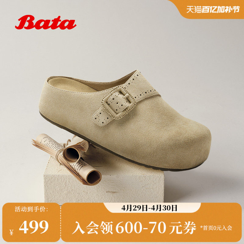Bata巴斯克勃肯鞋女2026春季商场新款时尚百搭牛剖皮拖鞋ACI04AH6