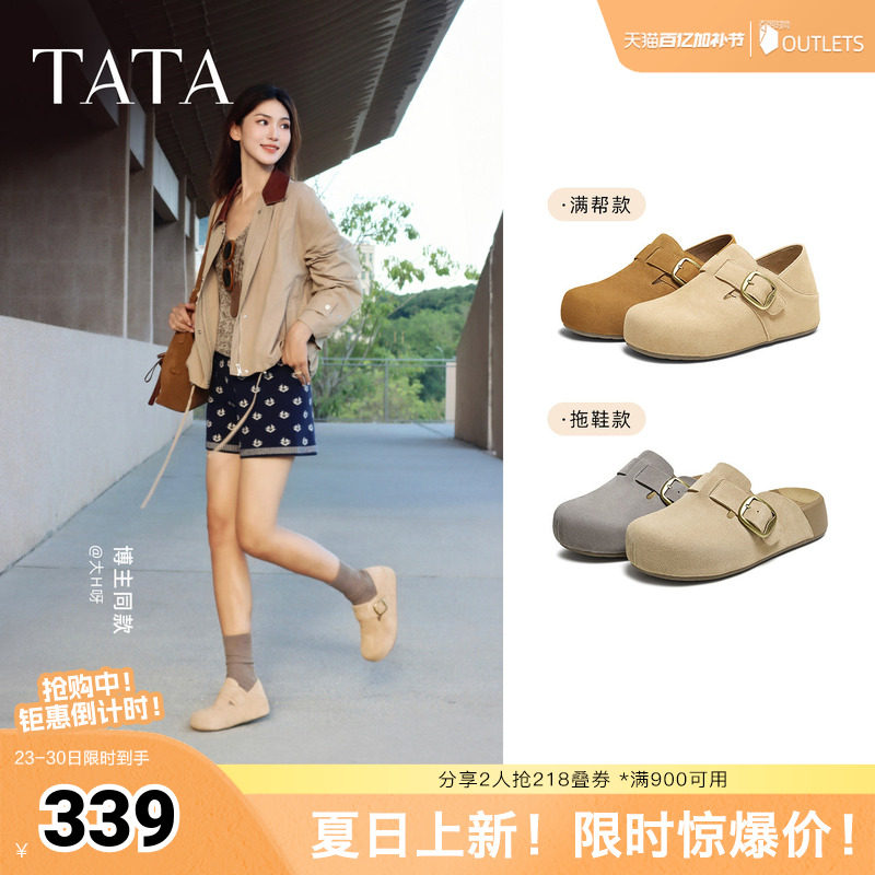 TATA他她女鞋春季勃肯鞋可外穿增高厚底休闲鞋包头拖鞋4UL01CH5