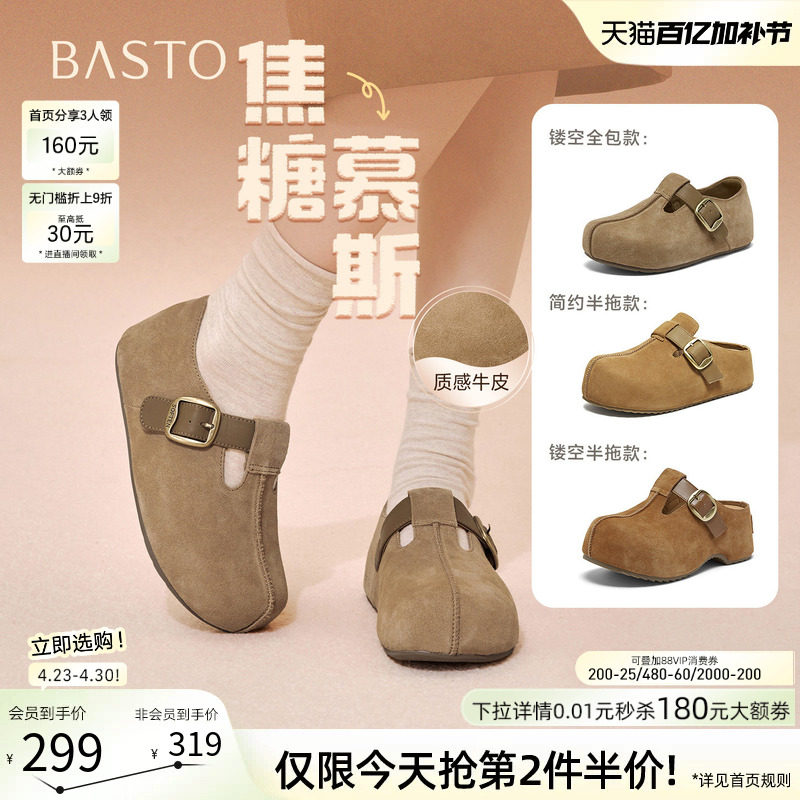 百思图26夏新款厚底增高全包勃肯鞋女复古外穿包头半拖鞋B9539AM6