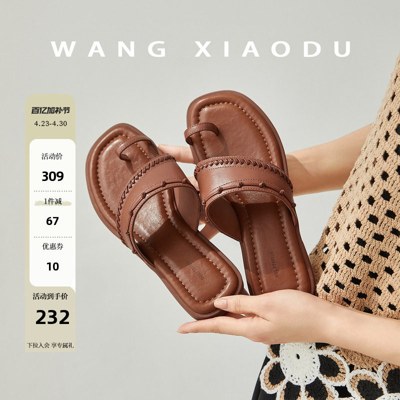 【王小毒】晴天海岛●手工编织夹趾拖鞋女外穿沙滩度假真皮一字拖