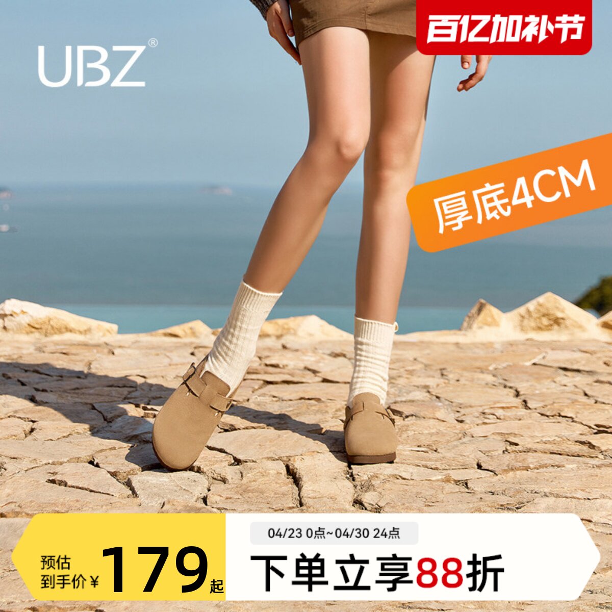 UBZ 宽版防水厚底勃肯拖鞋女外穿2026新款春秋增高小个子博肯半拖