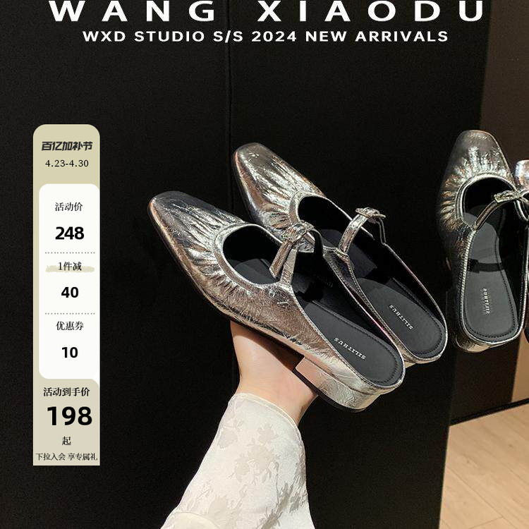 【王小毒】春和景明●粗跟包头拖鞋女夏外穿高级感银色褶皱穆勒鞋