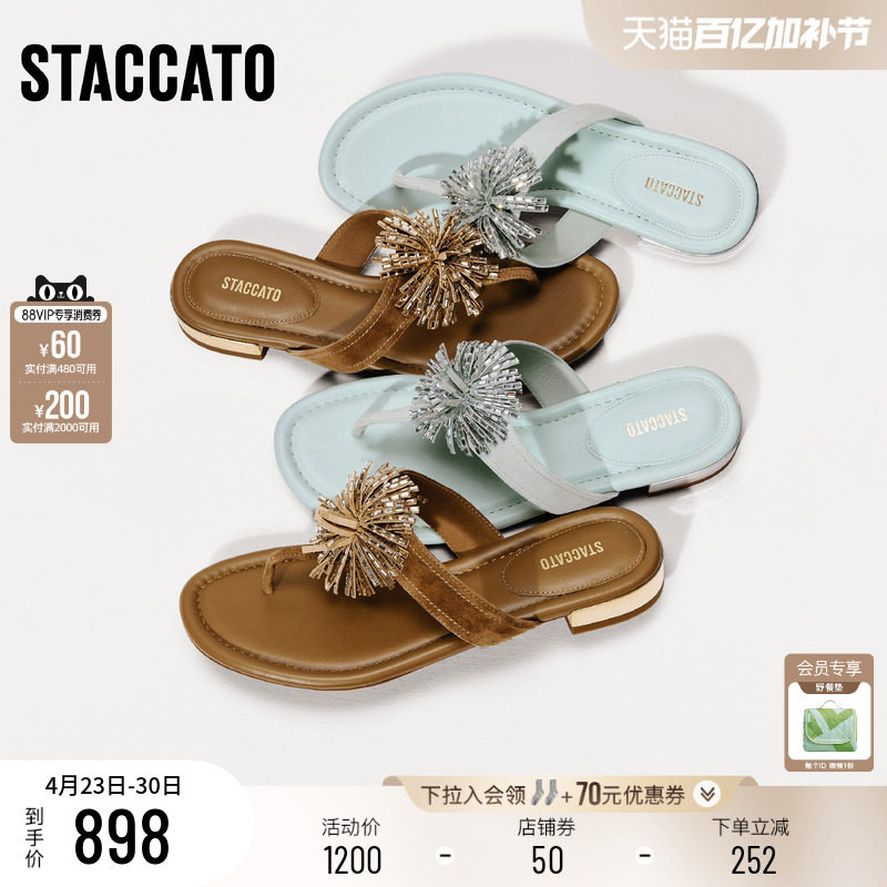 思加图2026新款烟花繁星复古夹脚人字拖平底外穿凉拖鞋女EDU12BT6
