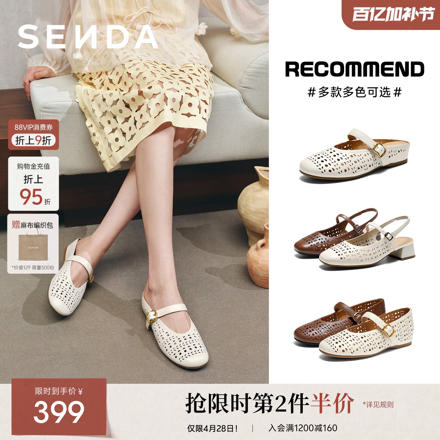 森达羊皮女鞋新款玛丽珍拖鞋镂空半拖穆勒法式凉鞋真皮单鞋皮鞋