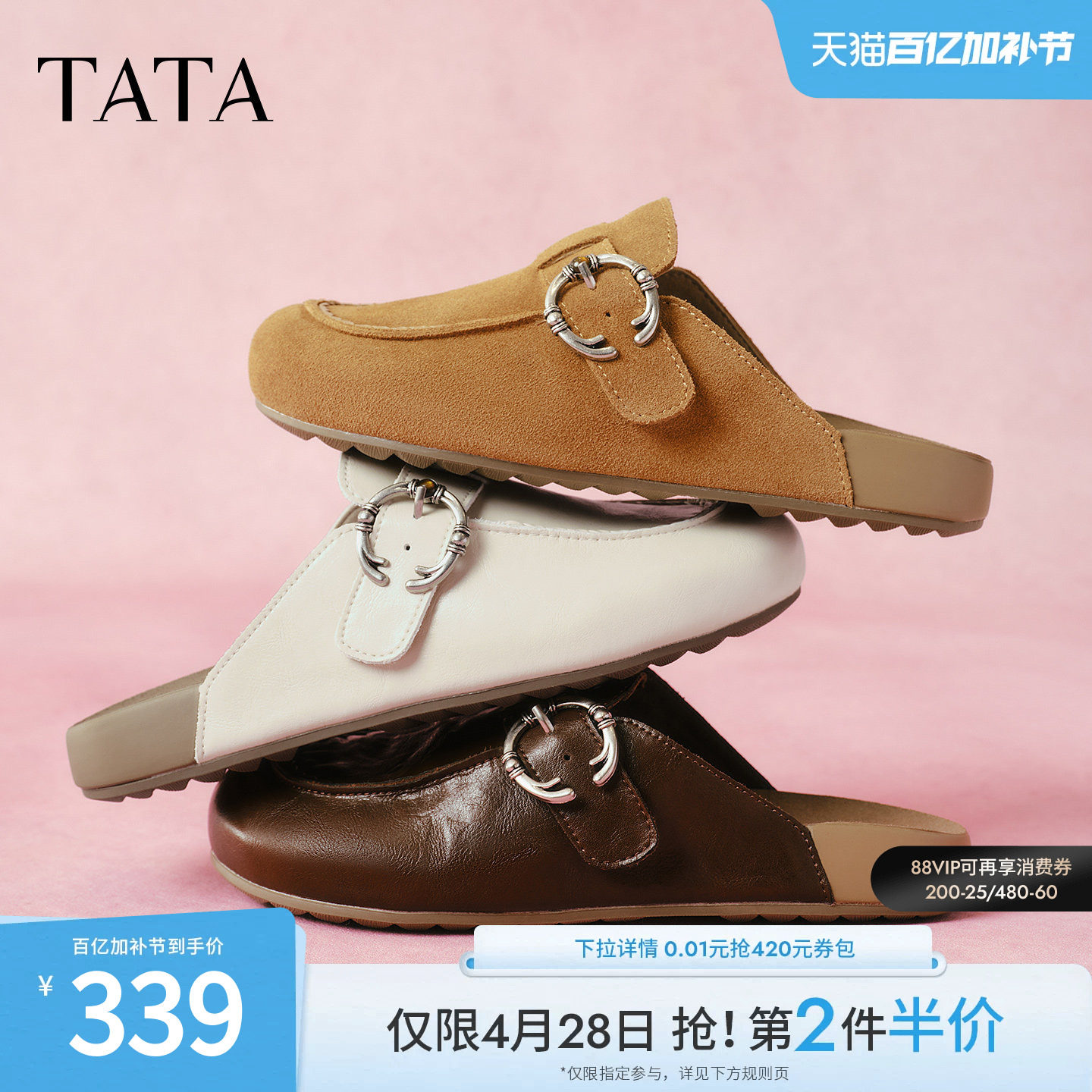 TATA他她女鞋2026厚底勃肯鞋增高包头外穿女鞋时尚拖鞋KM806AH6