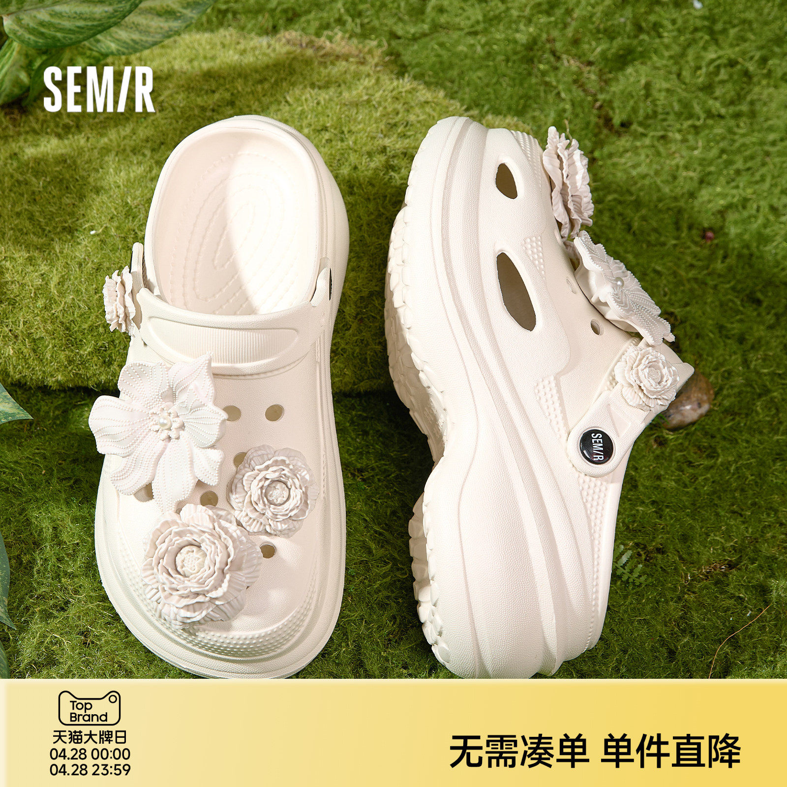 Semir女鞋花束洞洞鞋女2026春夏季新款厚底包头沙滩鞋外穿凉拖鞋
