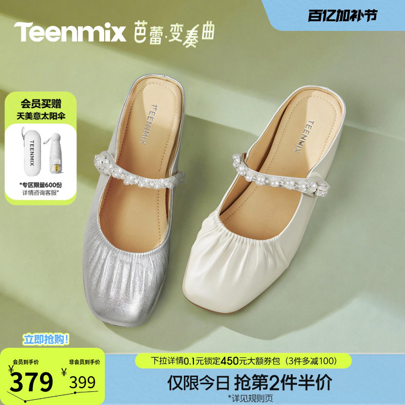 天美意仙女风珍珠内增高穆勒包头半拖鞋女外穿凉拖鞋2026夏季新款