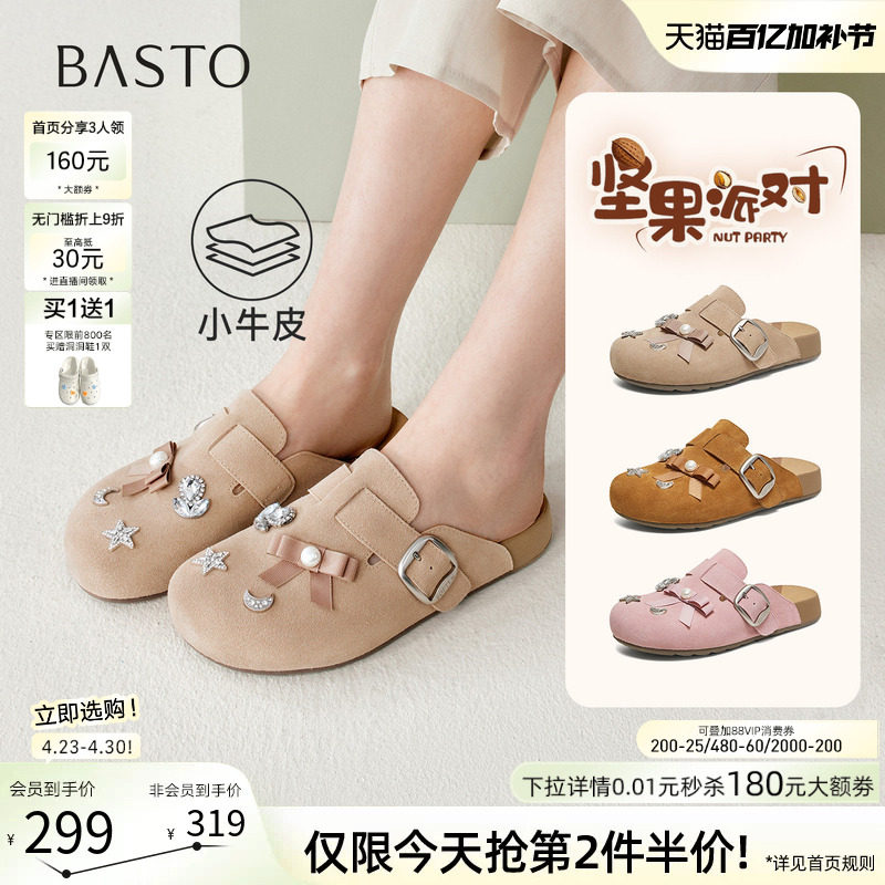 百思图2026夏新款真皮勃肯鞋外穿休闲女一脚蹬包头半拖鞋T8901BH6