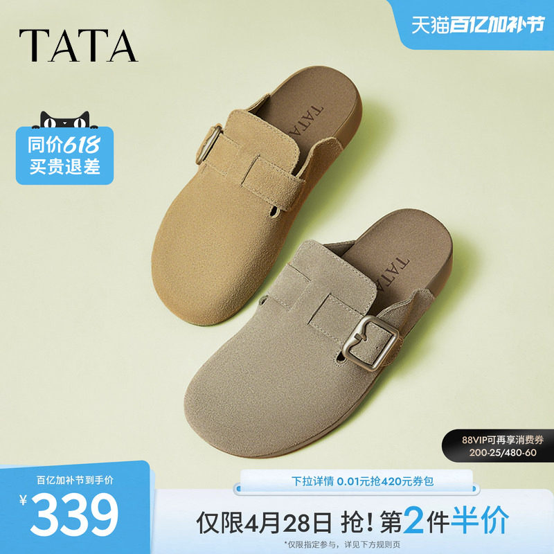 TATA他她复古勃肯鞋女春季新款休闲包头拖鞋女鞋穆勒单鞋CGW03AH5