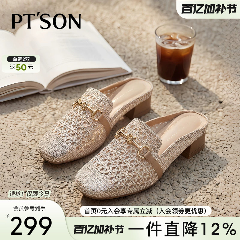 百田森2026春夏新款穆勒鞋女英伦风一脚蹬镂空拖鞋包头方头粗跟拖