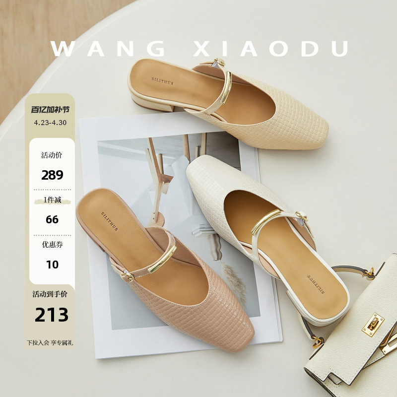 真皮~骄屿 一字带半拖鞋女外穿夏一脚蹬凉拖绝美超火穆勒包头凉鞋