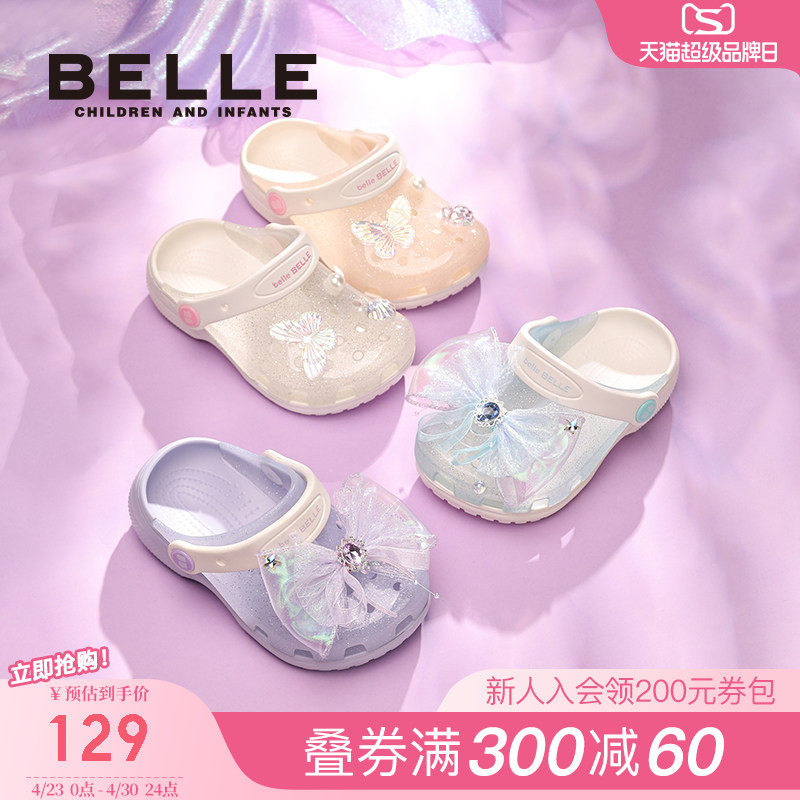 百丽童鞋女童凉拖鞋夏季新款小女孩公主鞋儿童洞洞鞋中大童沙滩鞋