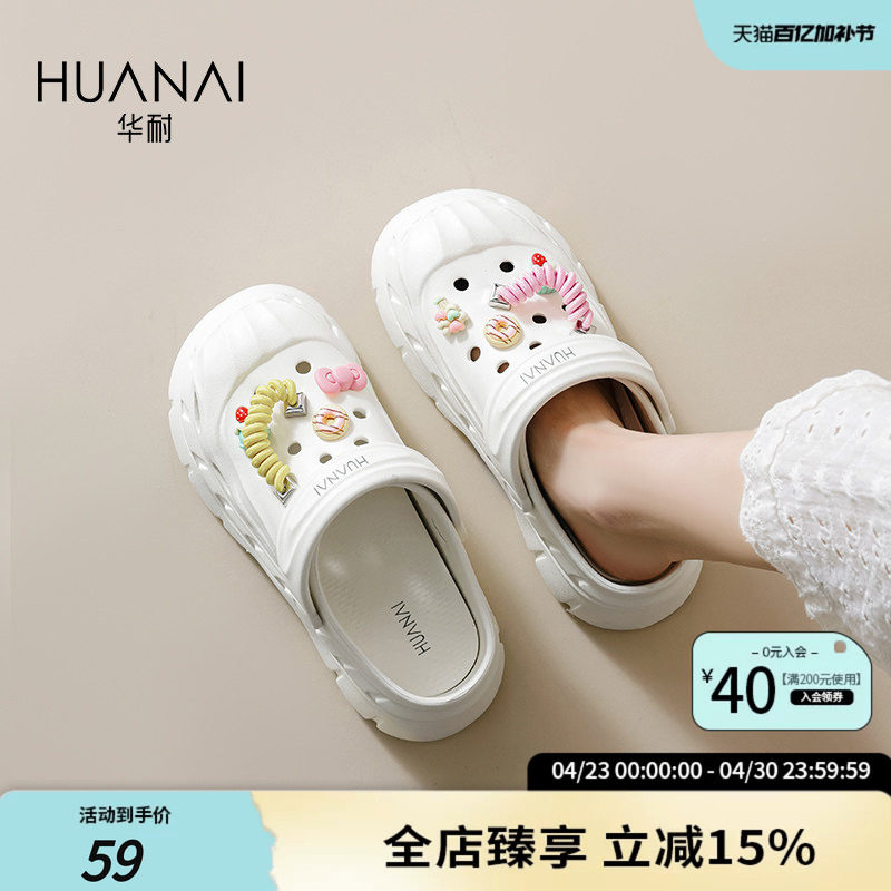 华耐白色洞洞鞋女士款2026新款夏季配饰外穿包头厚底增高凉拖鞋子