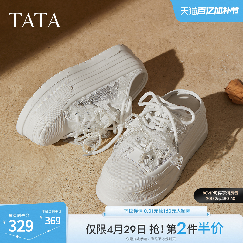 TATA他她厚底休闲包头拖鞋女外穿穆勒鞋透气小白鞋增高鞋CM602BH5