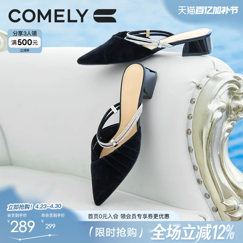 康莉羊皮包头拖鞋女外穿春夏季新款粗跟法式两穿凉拖尖头穆勒鞋子