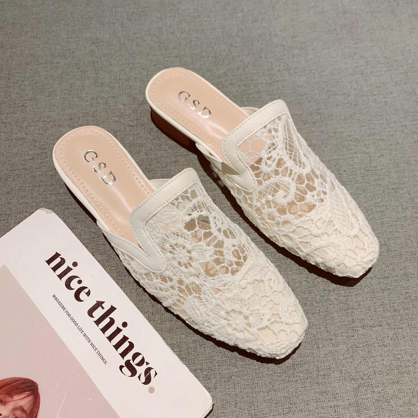 仙女风网纱透气一脚套包头穆勒凉拖2026年新款简约百搭低跟半拖鞋