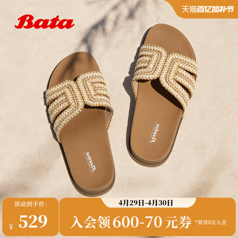 Bata罗马拖女2026夏商场新款时尚编织度假风休闲外穿拖鞋58003BT6