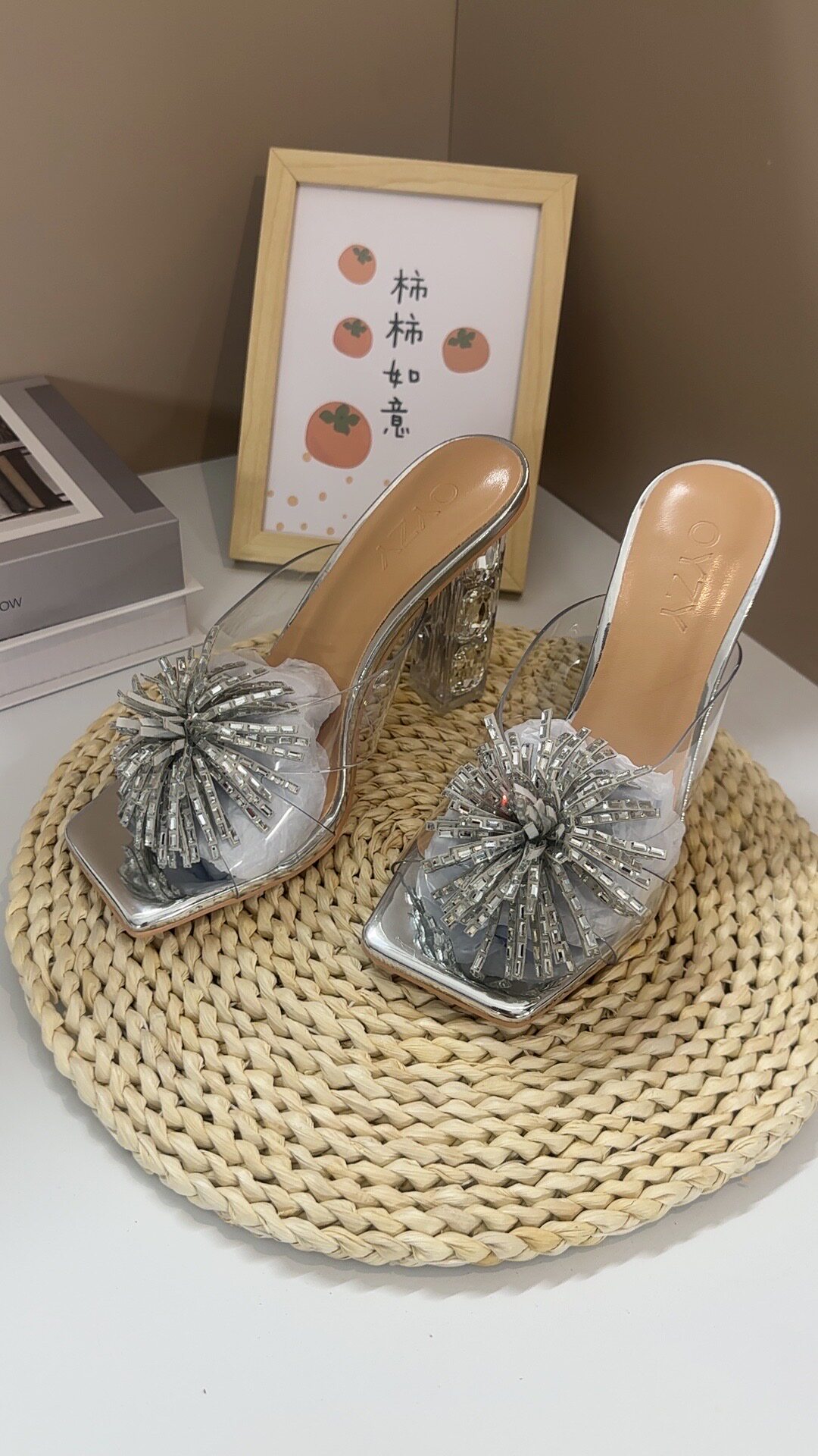 2026年新款时尚百搭粗跟高跟鞋女外穿性感水钻花朵凉拖鞋