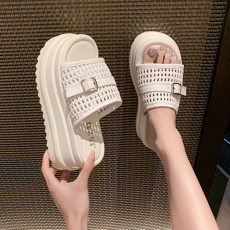 厚底拖鞋女夏季外穿高级感2026新款编织小个子增高8cm配裙子凉拖
