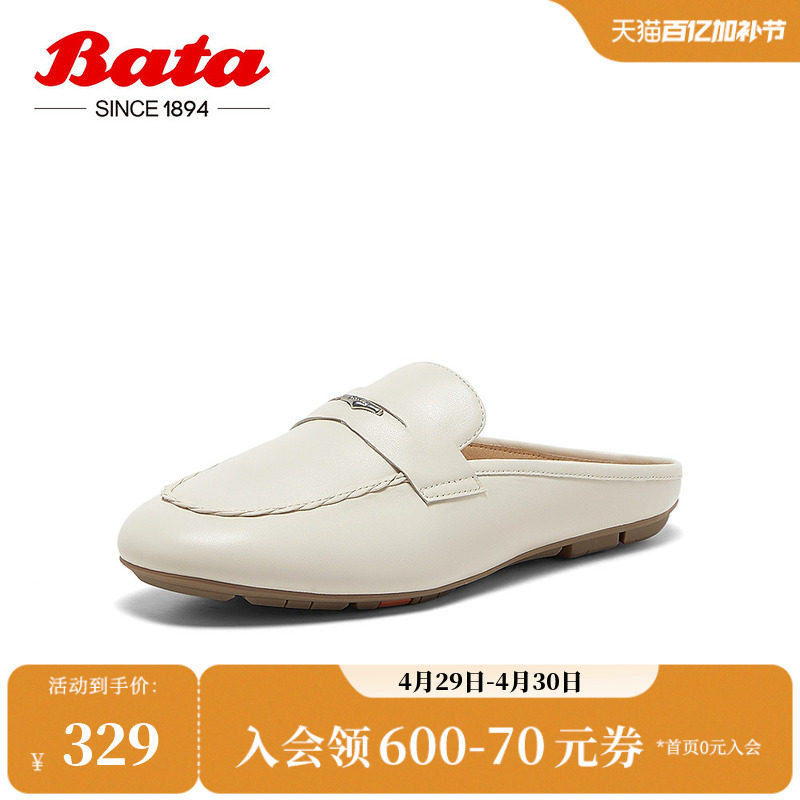 Bata穆勒拖鞋女商场新款英伦羊皮软底一脚蹬包头拖AMV49AH5
