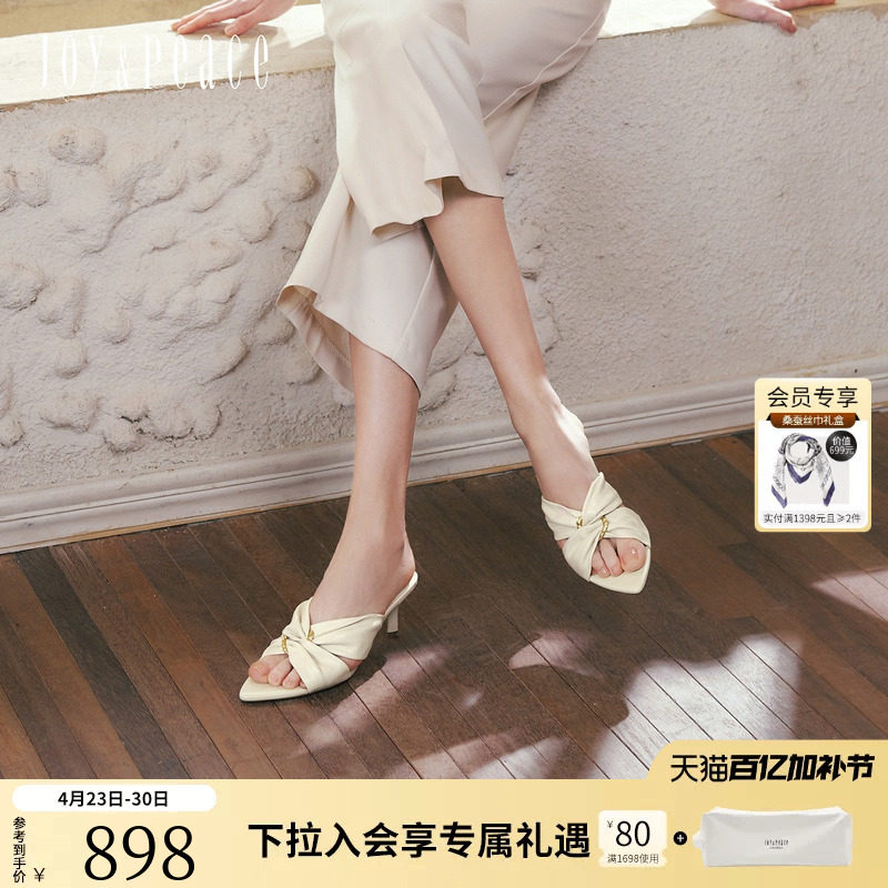 真美诗慵懒周末2026夏新款扭结羊皮金属尖头V口高跟凉拖鞋女外穿