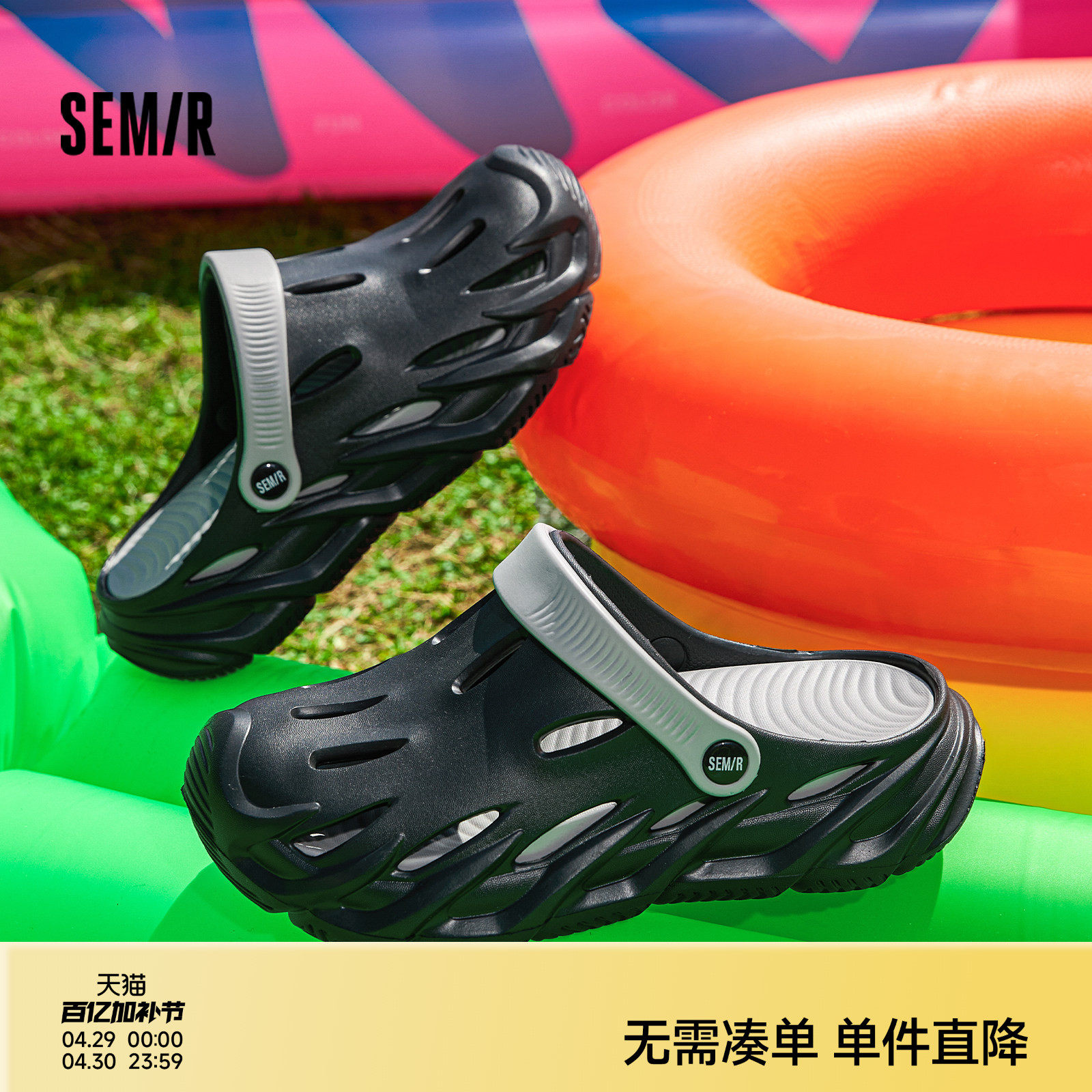 Semir男鞋洞洞鞋2026年夏季新款男士拖鞋百搭舒适外穿沙滩鞋凉鞋