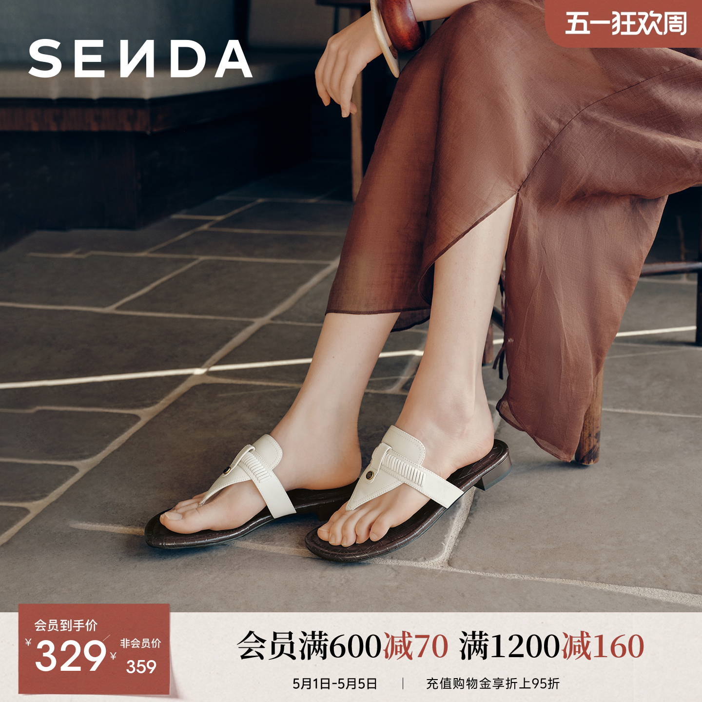 森达羊皮人字拖女鞋26夏季新款海边沙滩夹趾拖软面舒适外穿凉拖鞋