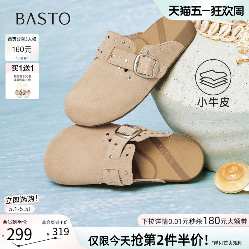 百思图2026夏季新款真皮厚底包头勃肯凉拖鞋外穿女半拖鞋T1593BH6