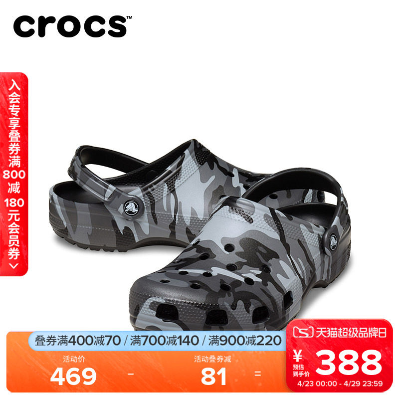 Crocs卡骆驰经典迷彩图案洞洞鞋男外穿沙滩鞋女鞋凉鞋拖鞋|211936