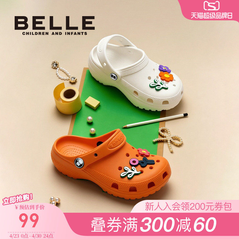 百丽童鞋女童沙滩鞋儿童洞洞鞋夏季新款小女孩软底鞋子宝宝凉拖鞋