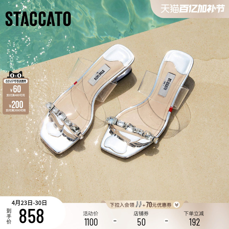 思加图新款无糖苏打仙女鞋凉拖鞋粗跟外穿女凉鞋EI409BT5